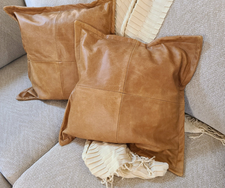 100% Leather Camel Brown Throw Pillow Cover - 20 x 20